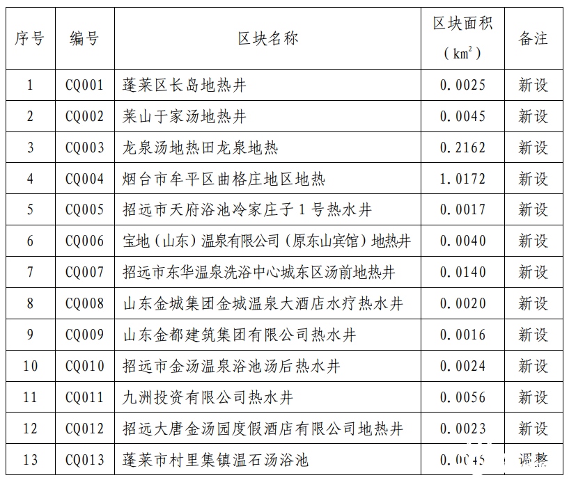 規(guī)劃期內(nèi),共設(shè)置地?zé)峥辈?/a>區(qū)塊2處,分別為山東省棲霞市惠禾·艾山地區(qū)地?zé)崞詹楹?a href="http://www.cf881.com/t/山東.html" >山東省棲霞市長春湖·霞光地區(qū)地?zé)崞詹椋斗艜r間為2022年。規(guī)劃地?zé)嶂攸c開采區(qū)1處,位于招遠(yuǎn)市東湯地?zé)崽?/a>。重點開采區(qū)內(nèi)要嚴(yán)格按照開采規(guī)劃區(qū)塊優(yōu)先投放采礦權(quán),鼓勵支持礦山企業(yè)整合重組,優(yōu)化開發(fā)布局,提高資源利用效率。