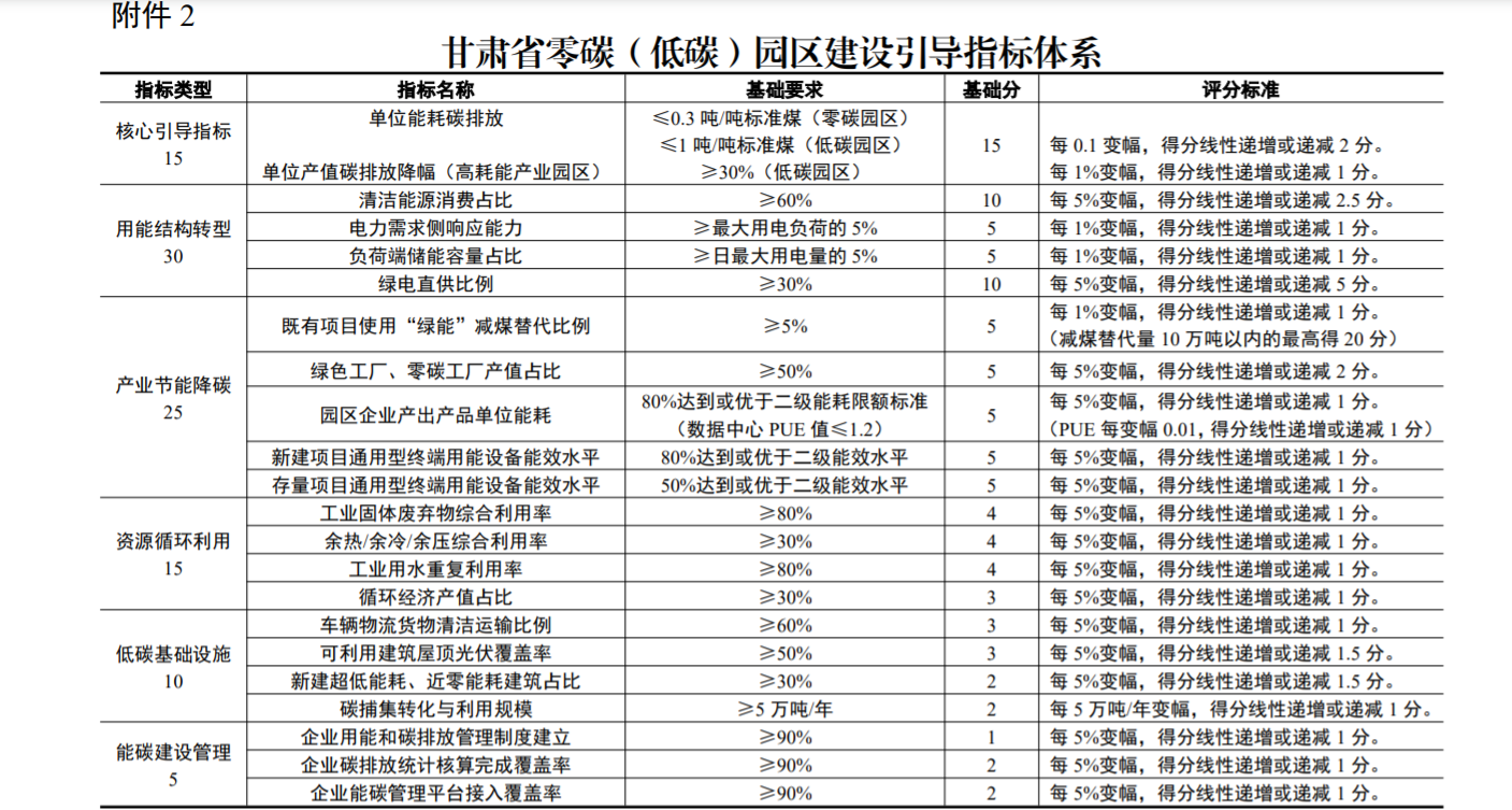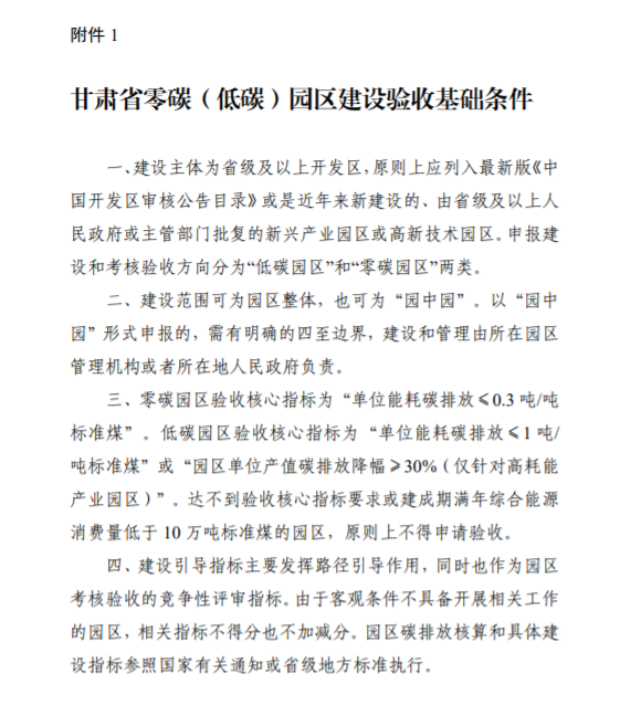 地方政策《甘肅省零碳園區(qū)建設(shè)方案》:5年建成10個左右零碳(低碳)園區(qū)