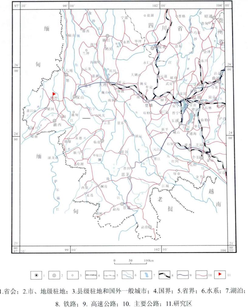 圖1 云南騰沖縣地理位置圖 2.項(xiàng)目區(qū)地質(zhì)背景 騰沖縣位于高黎貢山西側(cè),總體地勢(shì)北高南低,山脈走向?yàn)楸睎|一西向及南北向,與區(qū)域構(gòu)造線基本一致。高黎貢山與怒江并列向南蜿誕,高黎貢山峰脊一線海拔多在3000m以上;而怒江河谷海拔僅500—900m,區(qū)內(nèi)最高峰為高黎貢山中段的大腦子,海拔3780.9m;最低點(diǎn)為盈江縣拉沙河與穆雷江交匯處,海拔僅210m;最大高差達(dá)3570.9m,一般高差在400—2000m之間,屬中高山中一深切割地區(qū)。縣城西側(cè)為高中山地貌景觀,谷深坡陸;東側(cè)為中山山地稍為平緩,但切割密度較大;中部為斷陷谷地,河流階地發(fā)育,地勢(shì)平坦開(kāi)闊。騰沖地區(qū)構(gòu)造運(yùn)動(dòng)活躍、斷裂構(gòu)造發(fā)育、巖漿活動(dòng)頻繁、火成巖分布廣泛、新生代火山活動(dòng)、現(xiàn)代水熱活動(dòng)異常強(qiáng)烈,溫沸泉眾多。